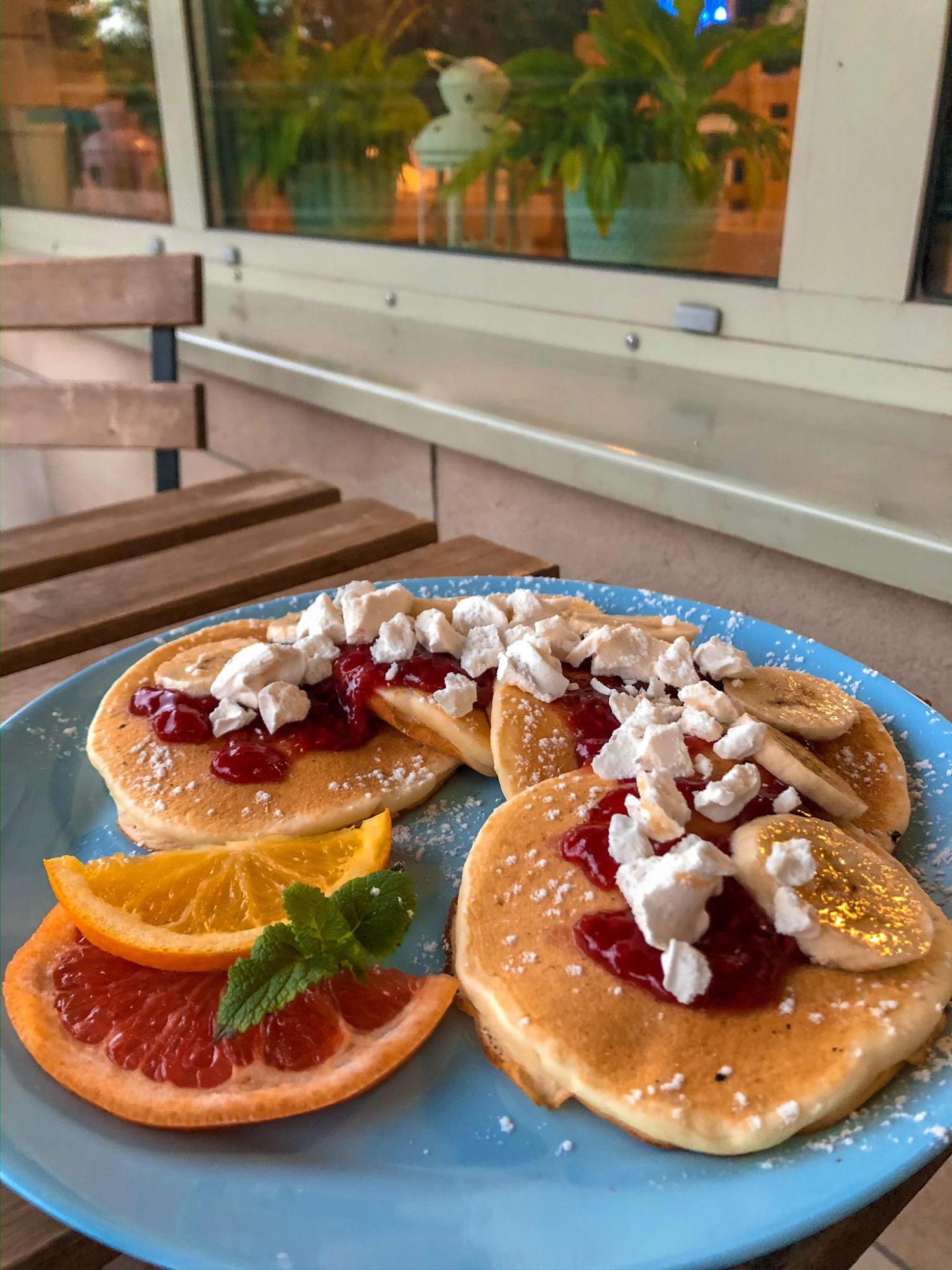 Do wyboru Naleśnik Amerykański ( szynka, ser , pomidory, ogórek , świeża sałata ) lub Naleśnik Wiedeński ( jabłko z cynamonem) + lemoniada lub Cola 330 ml