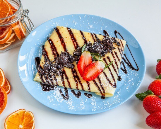 Naleśnik Rzymski ( szynka , ser żółty , pomidory , kukurydza , rukola ) lub naleśnik Krakowski (mascarpone , kajmak , herbatniki , migdały ) + lemoniada lub Cola 330 ml